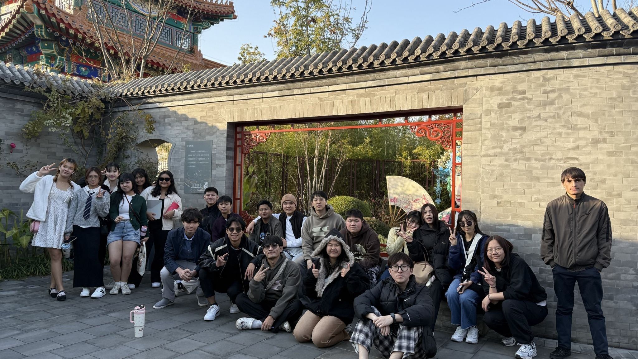 活动期间,留学生们依次参观了公园内的安徽园、北京园、厦门园、昆明园等特色城市展园,以及布哈拉园、德比园、哥伦布园等国际园区。通过实地体验和细致讲解,同学们直观感受了中国不同地域的独特城市风貌与经典建筑风格。在粉墙黛瓦、马头墙高耸的安徽园中,同学们感受了徽派建筑的清雅淡逸;在朱漆黄瓦、雕梁画栋的北京园中,领略了皇家园林的端庄气韵。留学生们深入体会到中华优秀传统文化的博大精深。